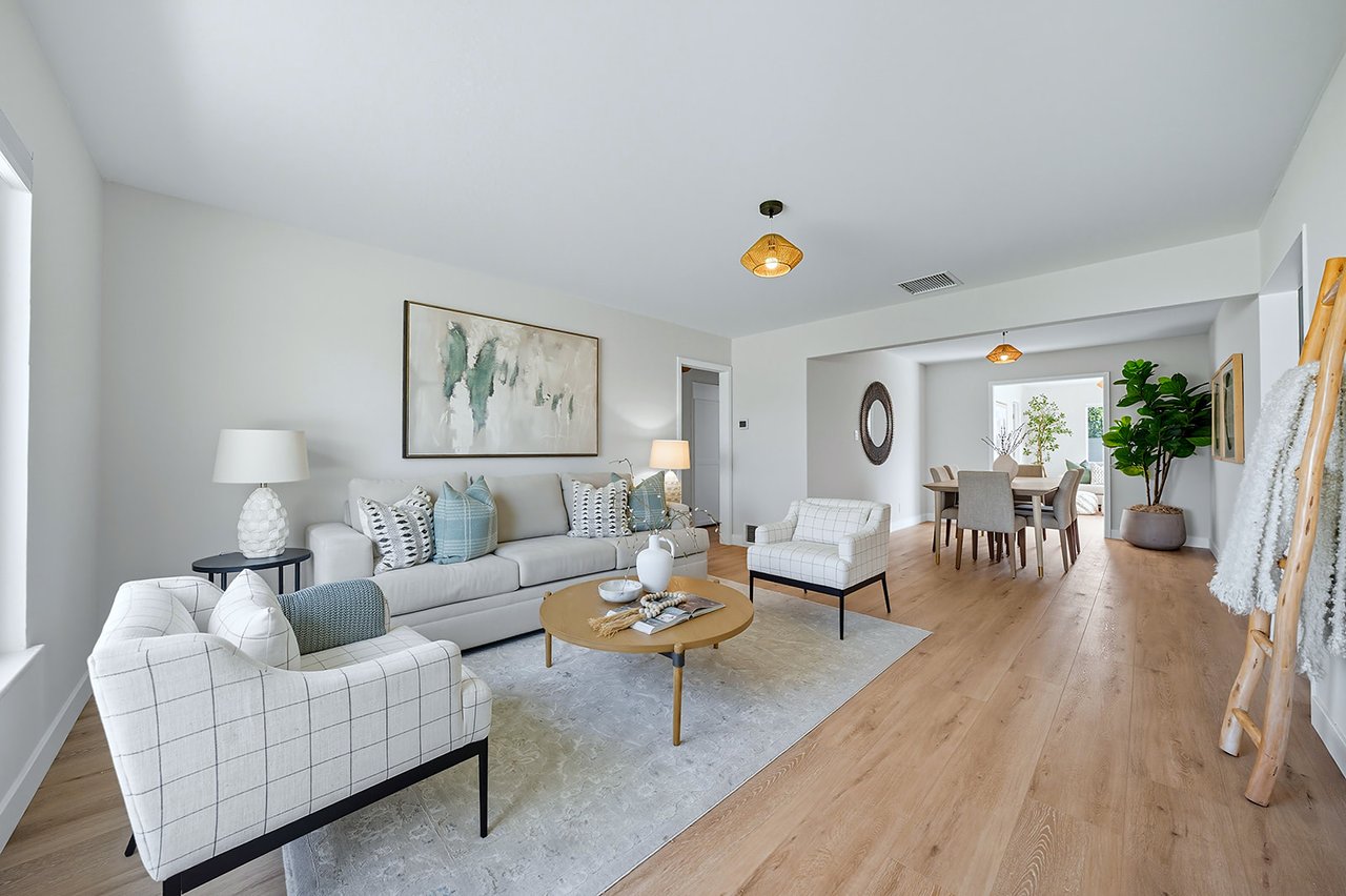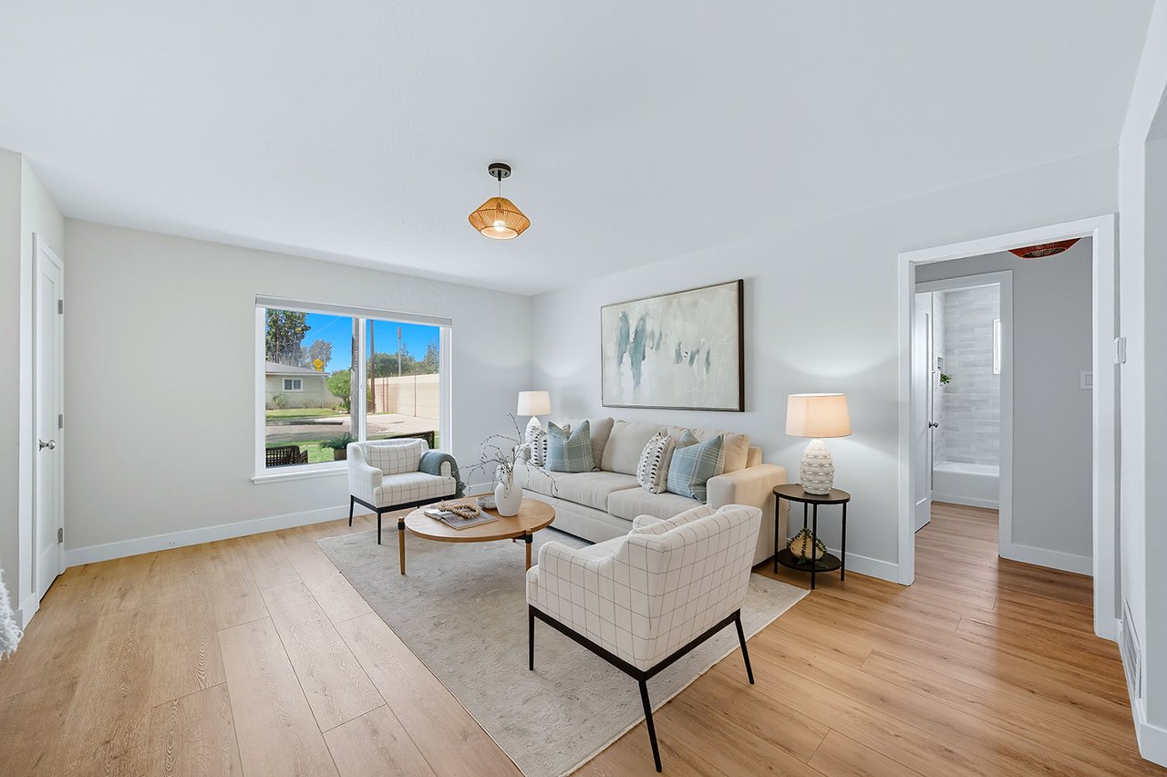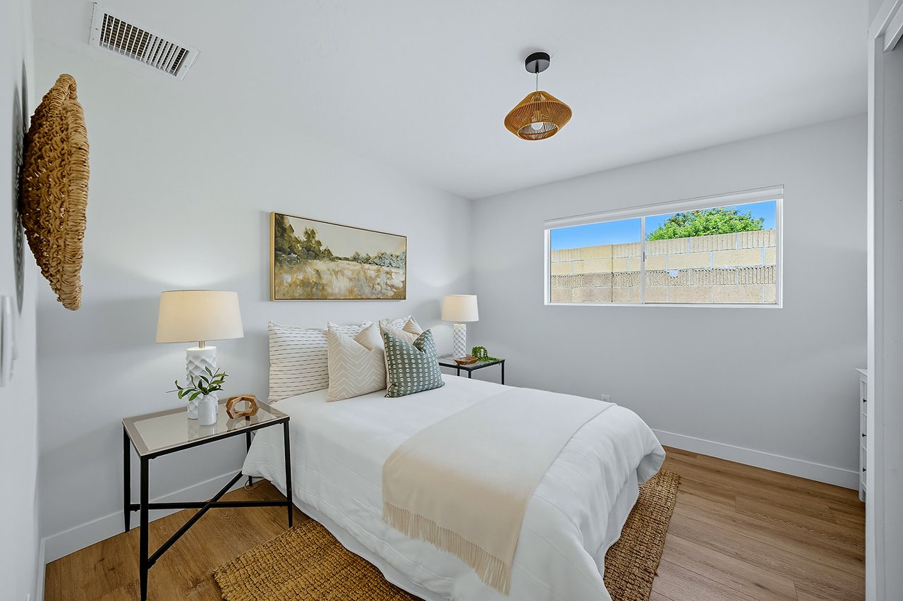 Discover your Anaheim sanctuary! Introducing a beautifully renovated mid-century, single-level home in the heart of the Anaheim Resort area, yards away from Disneyland. 2154 S. Madrid St. effortlessly blends charm, space, versatility and value into a rare find on a quiet cul de sac in a coveted area of Orange County. This turnkey property has been meticulously updated with new laminate, light wood flooring throughout, fresh paint, stylish woven light fixtures, new door hardware and more! A bright, open and airy floor plan seamlessly flows between ample living spaces. The completely updated kitchen features brand new stainless steel appliances, chic forest green cabinetry and a sunny dine in area. The gorgeously reappointed bathrooms include brand new, modern fixtures and large bedrooms offer plenty of storage space as well as natural light. Set on an expansive 8,000+ sq ft. corner lot, this abode includes a 2-car garage with built-in storage attached to a giant room with laundry hookups separate from the rest of the home, a huge grassy backyard that has been freshly landscaped and an oversized driveway, all poised the end of a peaceful cul de sac. This unique property presents both immediate livability and long-term potential. Whether you're dreaming of a lush garden retreat, room for additional living space, or even entertainment zones, the possibilities are plentiful. Not to mention the neighborhood has unbeatable walkability with true proximity to the Disneyland Resort, including world class shopping, dining and entertainment.