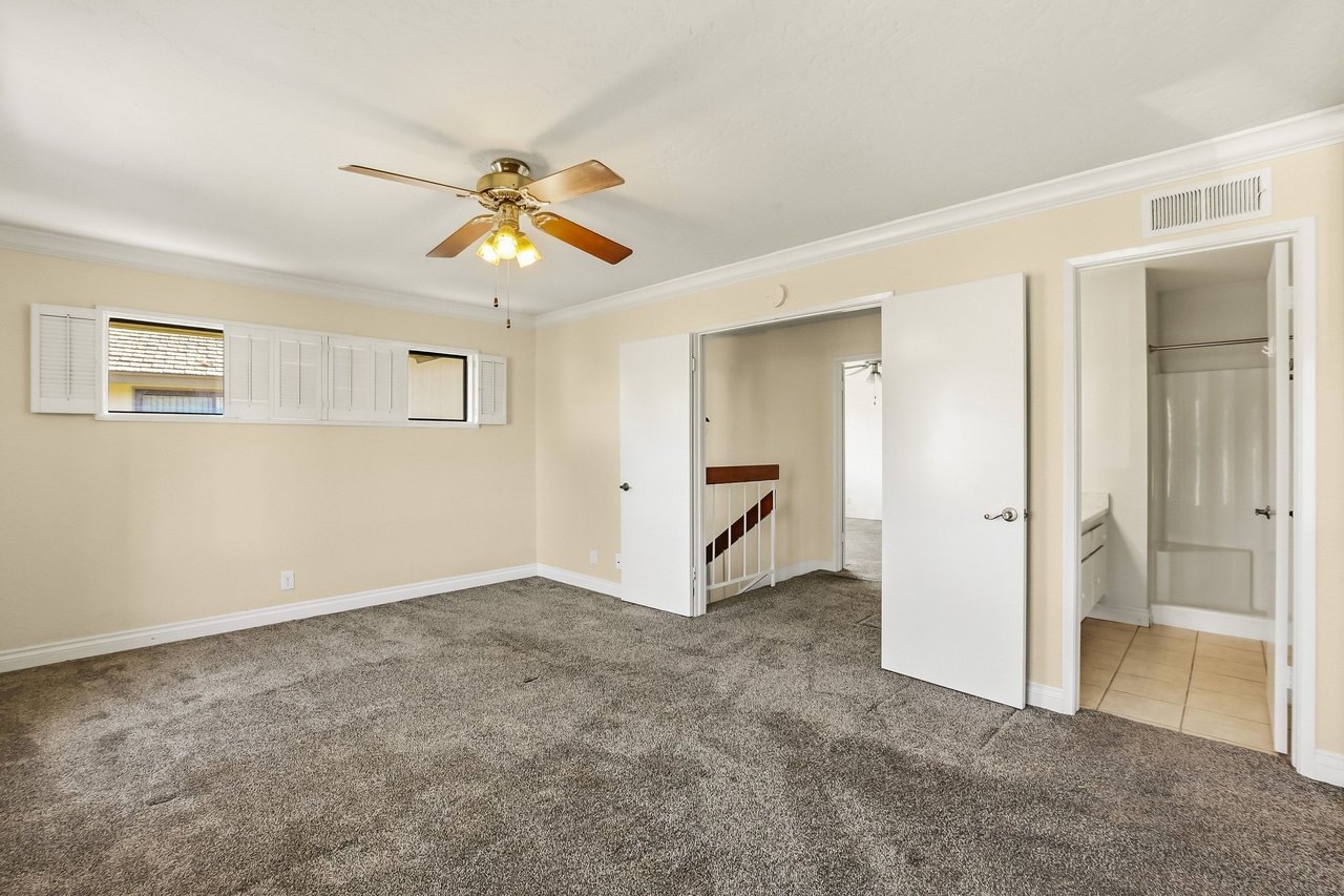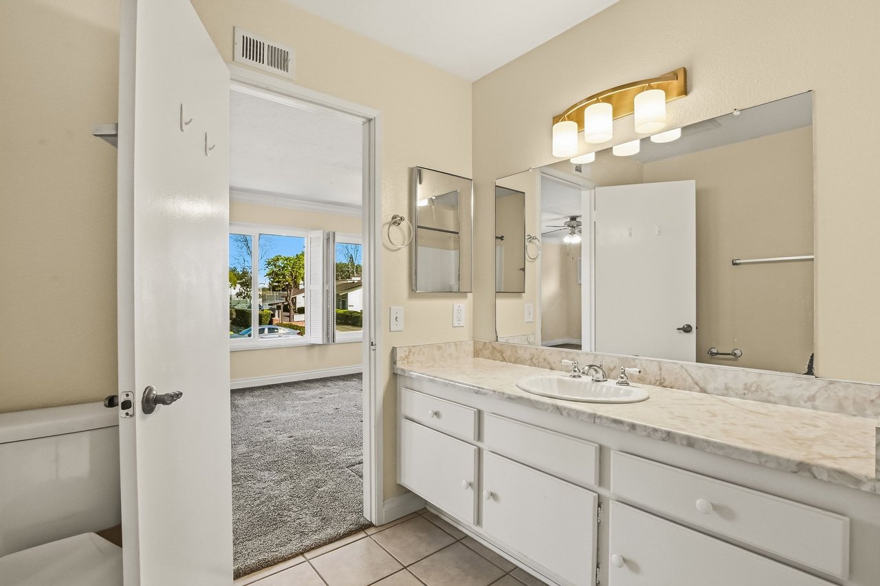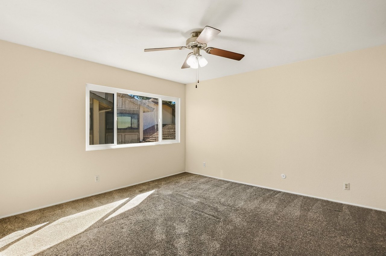 A wonderful opportunity to own a home in the desirable community of Villa Monterey in Tierrasanta. This two story townhome is large and spacious with 2 primary bedroom suites. Both bedrooms are upstairs each with their own bathroom and closet. Downstairs you will find a quarter bath just off the laundry room and living room. The kitchen is open and looks out onto the dining area and outdoor patio. Large 2 car garage with plenty of storage. The community offers miles of walking trails, swimming, jacuzzi, tennis & basketball. New AC in 2024, double pane windows and the HOA recently put on a new roof! Priced to sell. Great Bones. Make this property your own.